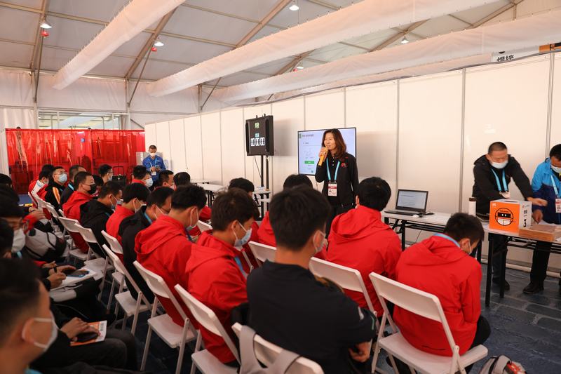 馬德志裁判長向組委會領導匯報建筑金屬構造(世賽選拔)項目競賽工作