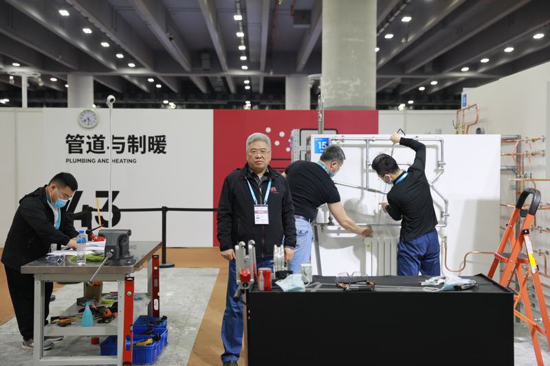 李本勇裁判長向組委會領導匯報管道與制暖(世賽選拔)項目競賽工作