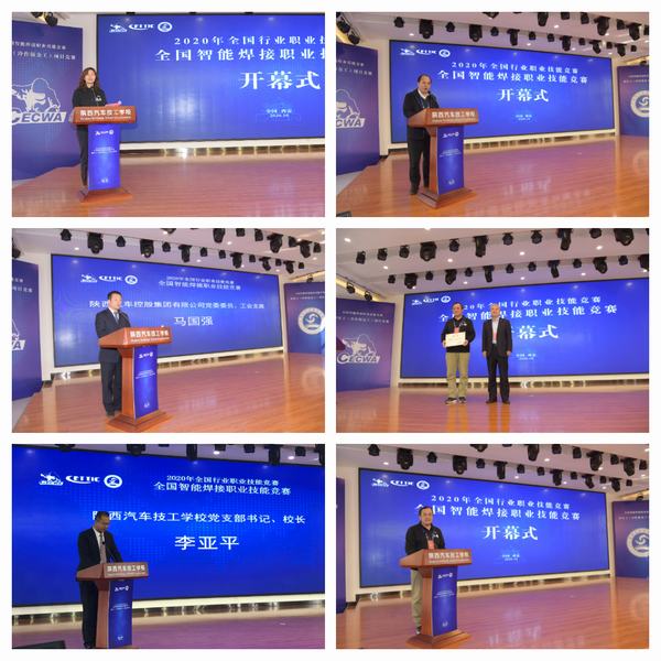 當天上午,在陜汽技校多功能廳舉行了“2020年全國行業職業技能競賽——全國智能焊接職業技能競賽”開幕式。中國工程建設焊接協會常務副會長劉景鳳,競賽組委會委員,中國工程建設焊接協會副會長、中國機械工業建設集團有限公司副總經理、總工程師杜正義,中國工程建設焊接協會副會長、中國中車集團有限公司人力資源中心顧問劉繼斌;陜西汽車控股集團有限公司黨委委員、工會主席馬國強,中國中車集團有限公司人力資源中心副主任張利明,陜西汽車技工學校黨支部書記、校長李亞平,以及本次沖壓工(冷作鈑金工)競賽裁判長、中國工程建設焊接協會副秘書長馬德志,中國工程建設焊接協會副秘書長、長三角鋼鐵產業鏈發展聯盟委員會秘書長包忠峰,中國工程建設焊接協會工業建構筑物分會秘書長、中國船舶重工集團國際工程有限公司鋼結構事業部部長、公司結構工程專業副總工蘭濤,中國工程建設焊接協會機械工業建設焊接專業委員會秘書長徐貢全,中船艦客教育科技(北京)有限公司總經理魯慧娟,陜西天益教育科技有限公司總經理孫書陽等來自各行業、職業院校的領導、裁判員、選手等共計100余人出席開幕式。