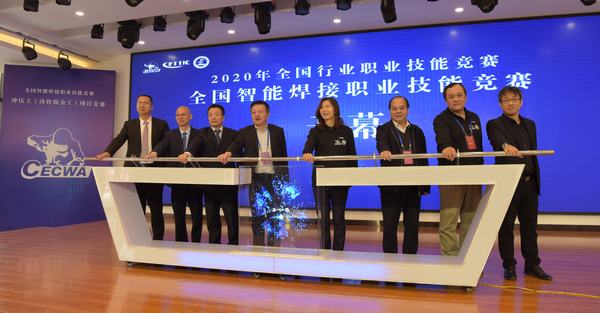 在音樂聲中,劉景鳳、杜正義、劉繼斌、馬國強、李亞平、馬德志、包忠峰、蘭濤共同開啟“2020年全國行業職業技能競賽——全國智能焊接職業技能競賽”大幕,標志著技能切磋的盛會就此展開。