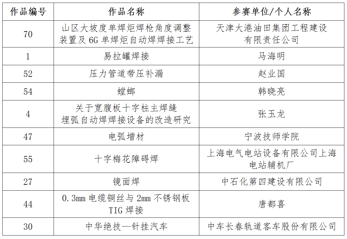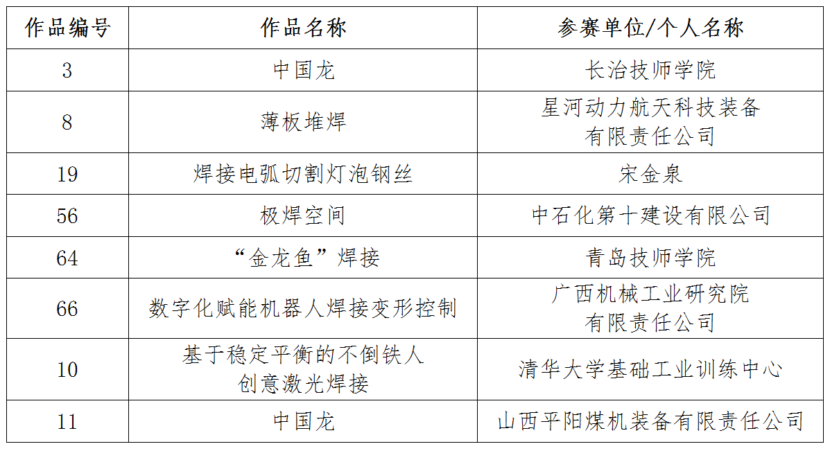 中國工程建設焊接協(xié)會全國焊匠技藝創(chuàng)意大賽結(jié)果公示