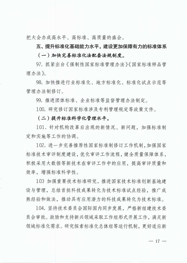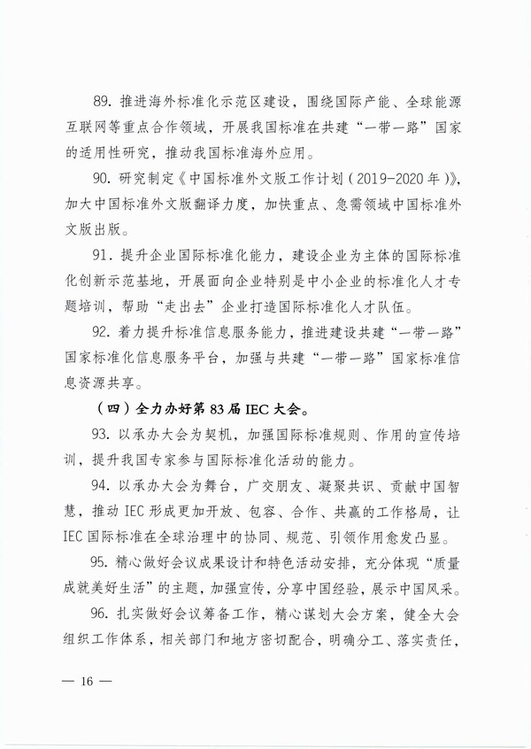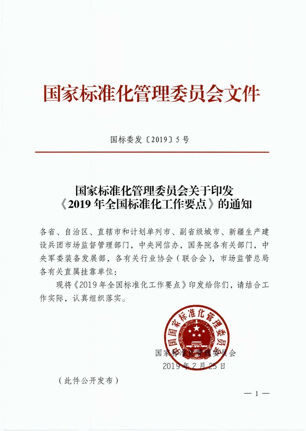 2019年全國標準化工作要點